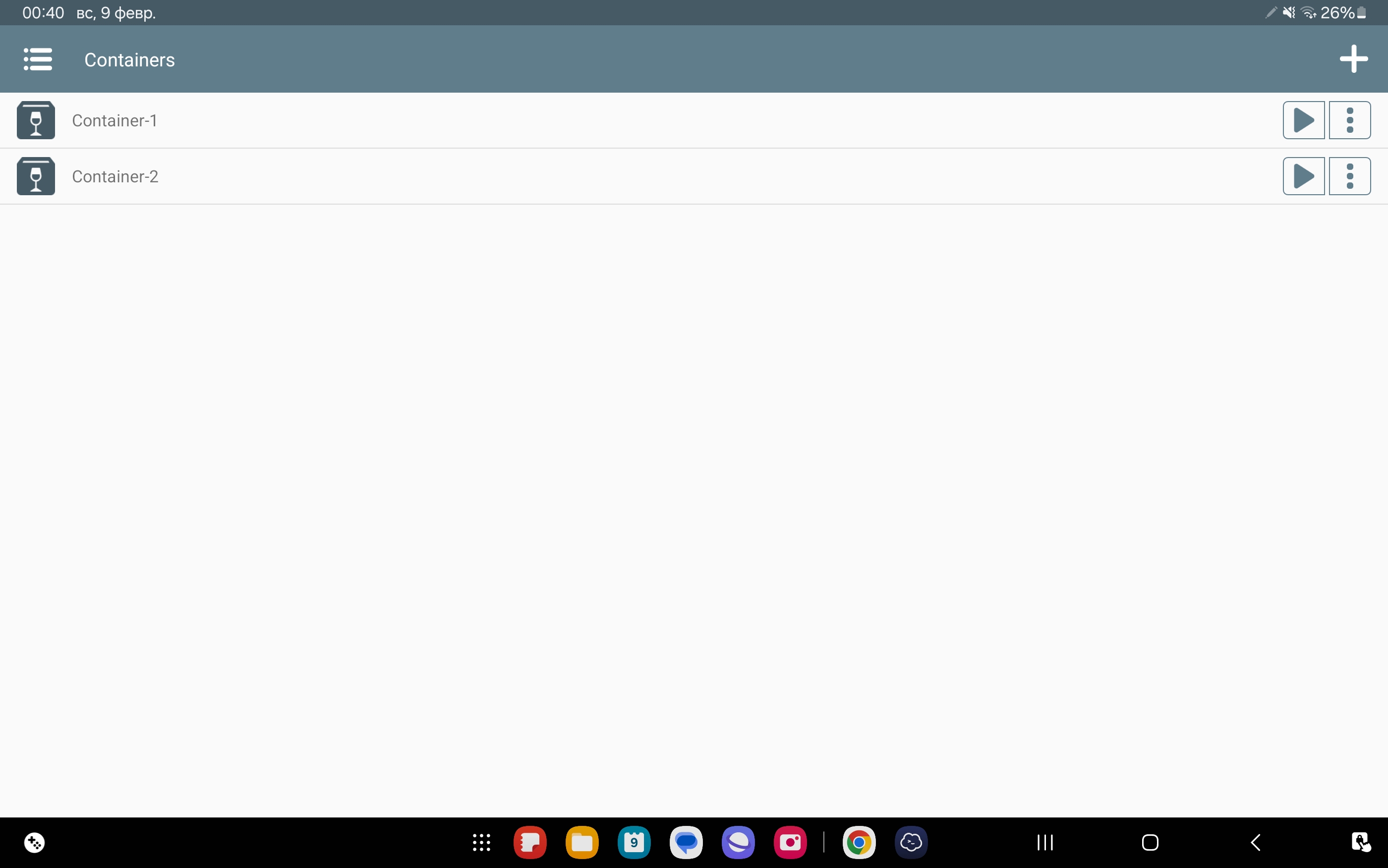 Now upon opening Winlator you should be presented with a new container in your listing (Container-1 by default) next open it by clicking the play-shaped icon.