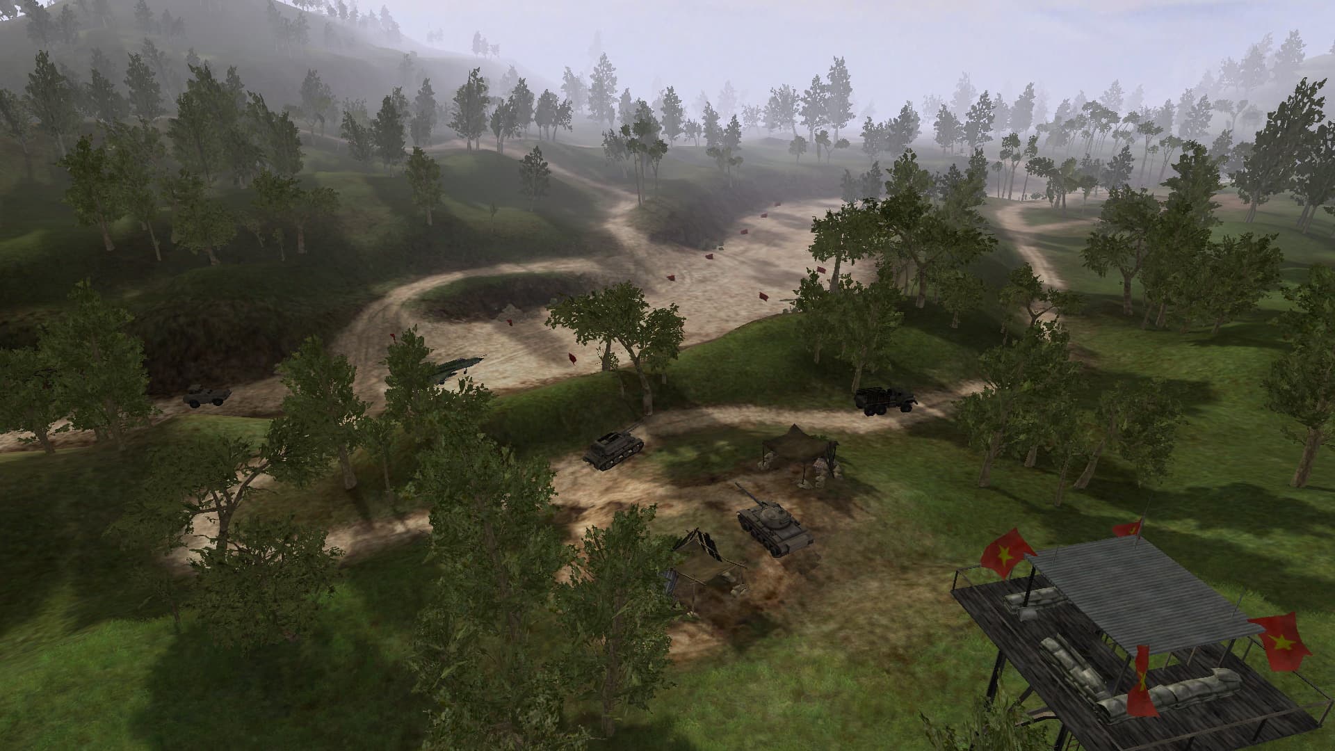 The Ia Drang Valley - perhaps the least interesting map , because it is low balanced: USA have huge air support on this map and NVA can`t to counteract them on a open area. From now on our server it is balanced - NVA now have the same air vehicles like USA - they have mig21 spawned in reverberd, and Mi8 Attack chopper spawned on second base